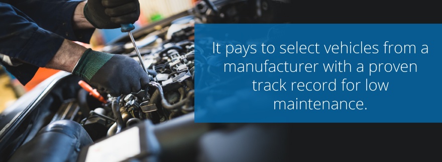 Frequencies of vehicle fleet downtime are generally lower among fleets that choose the right vehicles. As such, it pays to select vehicles from a manufacturer with a proven track record for low maintenance.