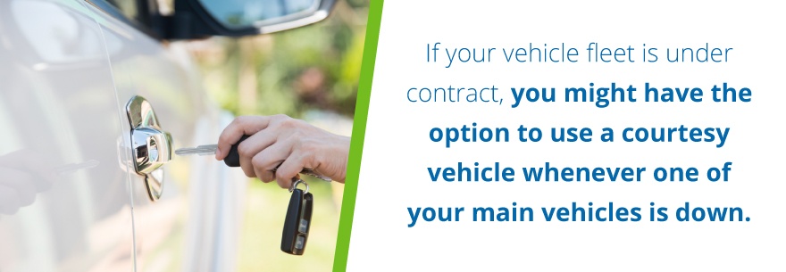 Despite your efforts to keep your vehicles operable at all times, certain vehicles will need to be sidelined from time to time. However, when a vehicle is off for repairs, you can still avoid downtime. If your vehicle fleet is under contract, you might have the option to use a courtesy vehicle whenever one of your main vehicles is down.