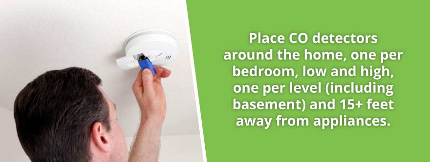 Since the human senses are insufficient to detect carbon monoxide until it’s too late, it’s important to install and regularly maintain carbon monoxide detectors. Many states and cities require carbon monoxide detectors, but even if it’s not a requirement it’s great advice to follow.